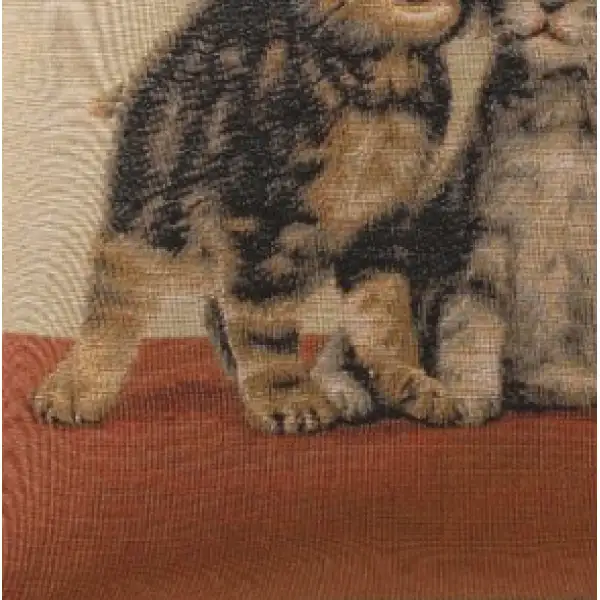 Two adorable kittens are the theme of this lovely European jacquard tapestry cushion cover. Kittens bring out your inner child, playfulness, and represent the need to have more fun, and nurture yourself and your sense of play.