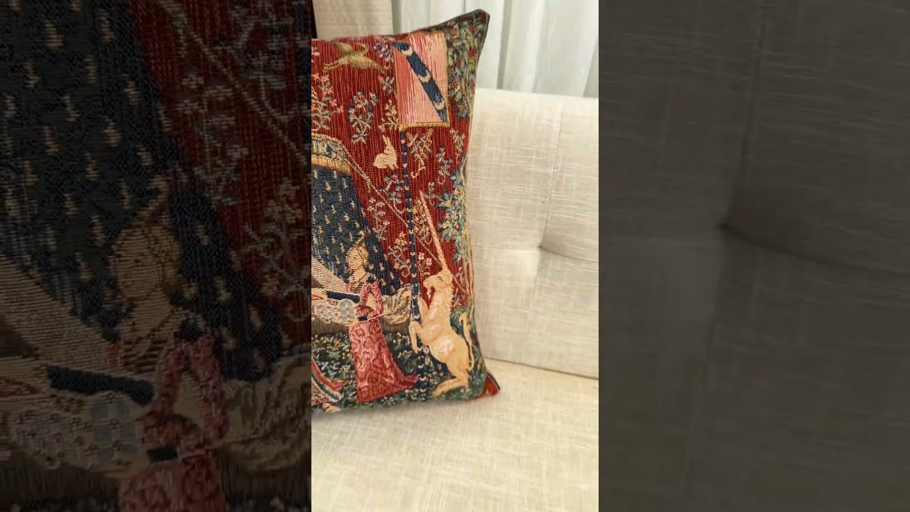 This European jacquard cushion cover is an extract of the tapestry series "The Lady at the Unicorn", it is named “A mon seul désir”.