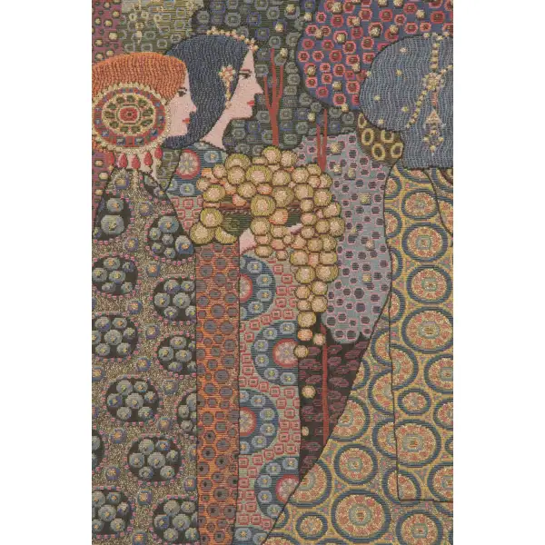 Aladin, or Aladdin, is a European jacquard wall tapestry. This Richly detailed tapestry is inspired by the figurative work of Vittorio Zecchin (1878-1947). Born on the glass-making island of Murano, Zecchin was influenced by Art Nouveau artists including Gustav Klimt.