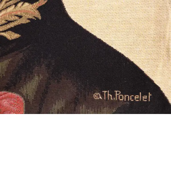 Crafted from jacquard-woven tapestry, this cushion cover pays homage to the esteemed Ambassador Westie, the epitome of regal charm. Designed by Thierry Poncelet, the West Highland White Terrier stands proudly in a high-collared jacket, exuding sophistication. A vibrant red medal adds a royal touch, elevating the scene to a realm of distinction. Beyond mere decoration, this piece doubles as a functional accessory, with its backing lined with luxurious Belgian velvet. Poncelet's ingenuity breathes life into the canvas, transforming it into a captivating masterpiece that seamlessly merges artistry with utility.