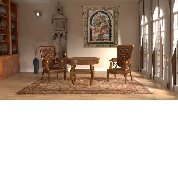 Ambrosius Bouquet Belgian tapestry is named for the painter Ambrosius Bosschaert of the Maurice Islands, The Hague Netherlands and depicts flowers in a vase in a window ledge.