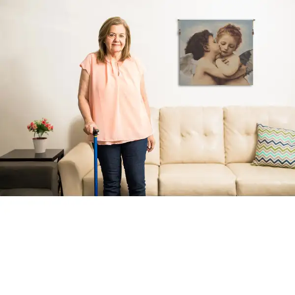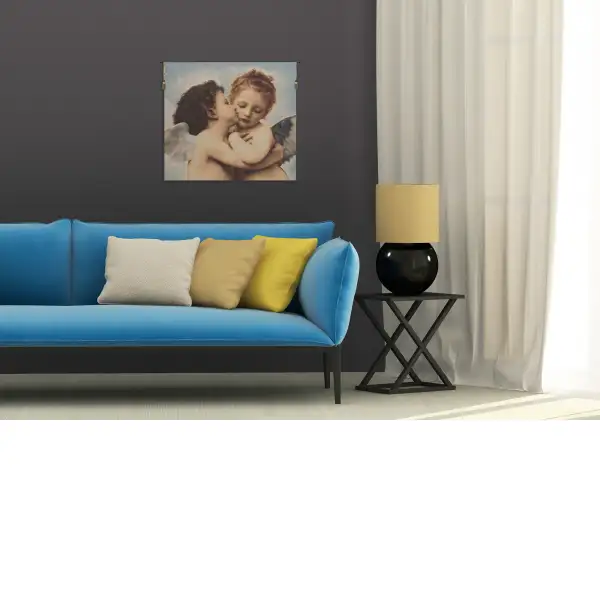 Angels is a Belgian made jacquard woven wall tapestry. The artwork is a detail from the original artwork by William Bouguereau done in 1890 called L'Amour et Psyché, enfants.