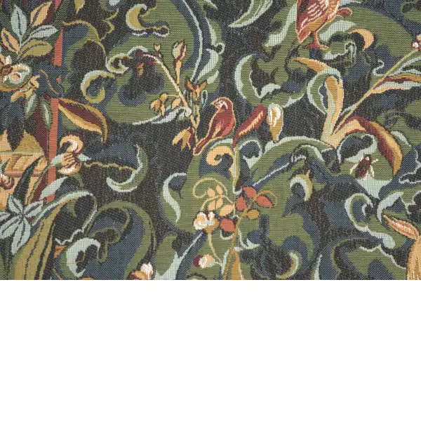 The cushion's enchanting color palette features rich greens, blues, reds, and gold, exuding timeless elegance. A dark red border, adorned with foliage motifs, gracefully frames the cushion's edges, adding refinement and completing the design. The Aristoloches Green cushion cover is not just a decorative piece but a masterpiece that transforms any space into an enchanting haven, celebrating the beauty of nature and artistry.