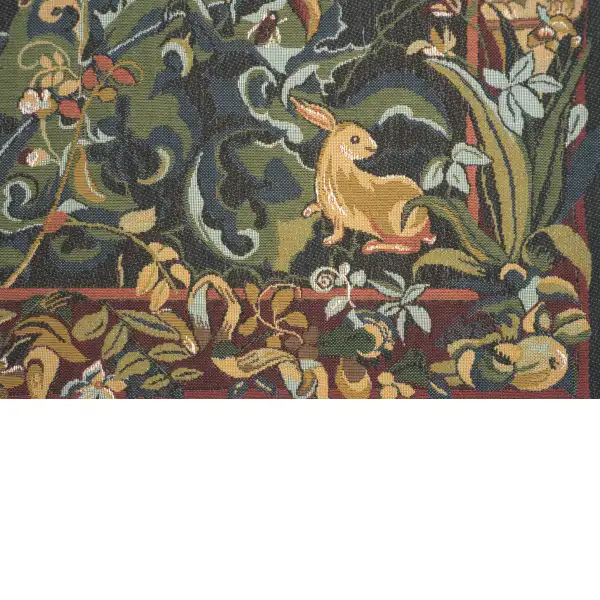 The Aristoloches Green cushion cover seamlessly fuses artistry and nature, bringing whimsical animals to life in a rich tapestry. Crafted through meticulous jacquard weaving, it attests to the precision and detail defining its creation. Enchanting animals, including a hare, birds, and insects, are intricately concealed within the Aristolochia foliage, harmonizing the natural world with an old-world aesthetic. The jacquard-woven technique ensures impeccable detail in every nuance.