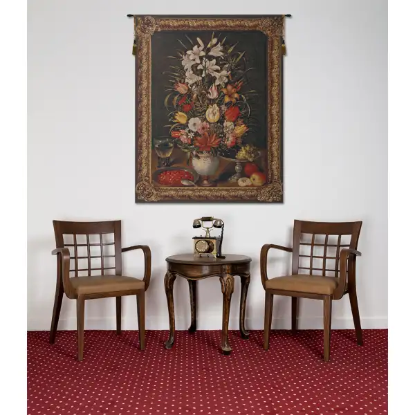 Antique Breughel is a Belgian wall tapestry. The original still life was painted by Jan Breughel (1568-1625) and is known as Flowers in a Vase. A fine accent to your home décor.