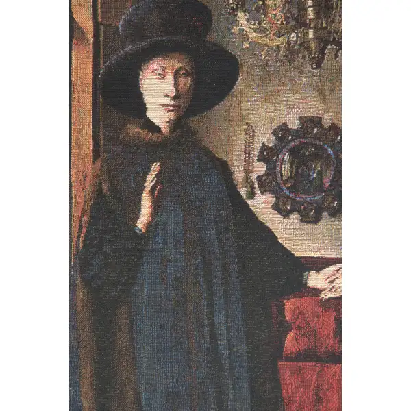 Arnolfini Portrait, Jan van Eyck woven Belgian tapestry is inspired by the work of the Early Netherlandish painter Jan van Eyck.