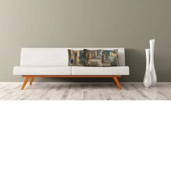 Bellagio Village I is a Belgian impressionist tapestry cushion cover piece inspired by the work of Robert (Bob) Pejman whose landscape imagery has captured the imagination of many with his focus on Lake Como, and Venice.