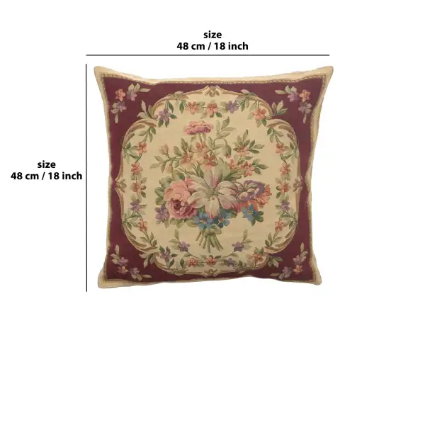 Our Bouquet Floral Red Tapestry Cushion Cover brings the beauty of French needlework to the home. The cushion cover’s colors burst forth woven with the softest cotton yarn with viscose added for a luxurious sheen. Vibrant hues of burgundy, pink, purple, periwinkle, green, gold, and ivory will bring a garden-like look anywhere the cushions are placed. Purchase a pair of these tapestry pieces to cover pillows for each arm of the sofa or the head of the bed. This tapestry décor will bring the beauty of European elegance to any room. Cushion cover backed with lining and zipper. Infill not included. Woven in Belgium.