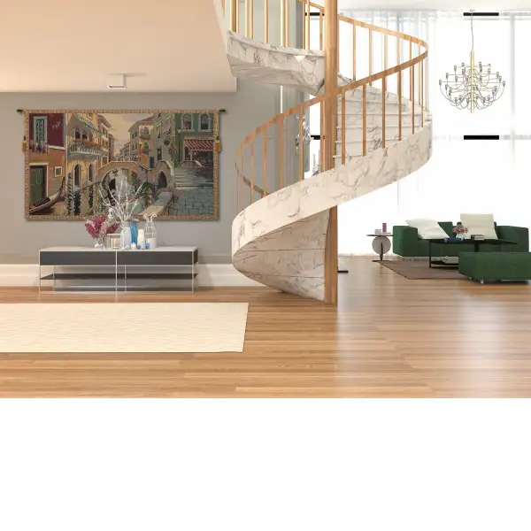Venice is the place of dreams, the city of romance. An enchanting Venetian canal scene is depicted in the Canale Veneziano Tapestry by Alberto Passini. The deserted walkways and waterways can only be found at dawn before the hustle and bustle of daily life begins. The beautiful colors of the city of the sea are woven in full detail for you to enjoy every day wherever you choose to hang this heirloom quality artwork. You’ll love the decorative and historical touch it brings to your home. The tapestry is woven in Italy from cotton, poly, and viscose for softness and luminosity. The back is lined and tunneled for easy hanging.