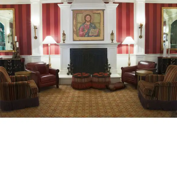 Christ Pantocrator Icon is an Italian jacquard wall tapestry. In Christian iconography, Christ Pantocrator refers to a specific depiction of Christ. The Pantokrator, largely an Eastern Orthodox or Eastern Catholic theological conception and has come to suggest Christ as a mild but stern, all-powerful judge of humanity. Generally speaking, in Byzantine church art and architecture, an iconic mosaic or fresco of Christ Pantokrator occupies the space in the central dome of the church, in the half-dome of the apse or on the nave vault.