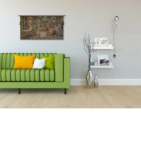 A testament to the 18th century Rococo style artwork by Francois Boucher, our Concerto Grande Tapestry brings fine woven art to the home. This woven piece of art features intricate detailing and royal imagery. Boucher was the beloved painter of Louis XV’s court. His painterly scenes reflected the gaiety and finery of the court as with his concerto scene. The group’s finery gives the idea they are members of the King’s court taking an afternoon for musical play and enjoyment. The tapestry is woven in viscose and cotton for luxurious color and texture. Backed with lining and tunnel for easy hanging. Woven in Italy.