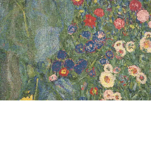 Savor the intense color and vibrancy of summer flowers in full bloom all year long with this gorgeous tapestry cushion cover inspired by Austrian artist, Gustav Klimt. This remarkable pillow cover features a portion of one of Klimt's most beautiful paintings, A Country Garden with Sunflowers. The abundance and color on display on this beautiful cushion cover will pair well with many decorating styles and create a wonderful focal point on a sofa, chair, or bench. Durable and soft cotton, wool, and viscose blend material. Smooth moving zipper for easy changes. Cover only, no infill. W: 18" x H: 18".