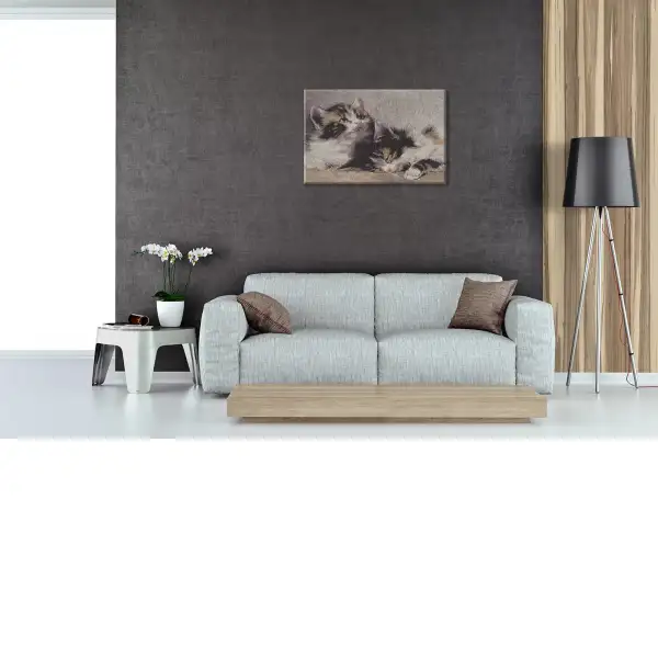 Cuddle Buddies is a woven tapestry wall hanging panel depicting two of the cutest little kittens snuggling the day away. This is the perfect piece for a child's room, or an avid feline fan's home.