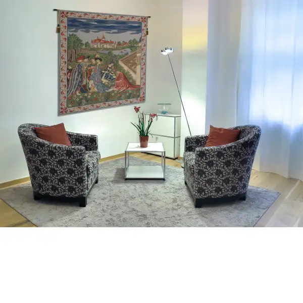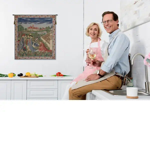 Duke De Berry Belgian tapestry was originally woven between 1413-1416 and depicts Duc De Berry Castle during the month of April.