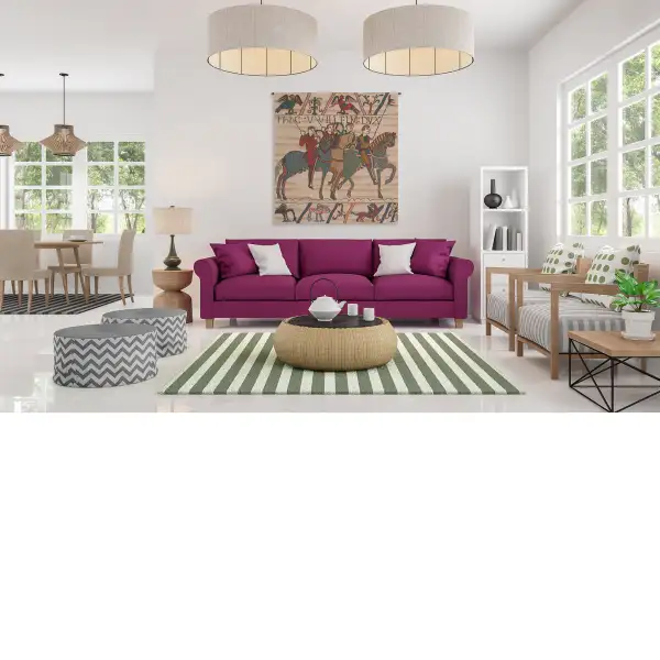 Depicts the events leading up to the Battle of Hastings (1066) when Duke William of Normandy was victorious over King Harold of Saxon, England. Here, the cavalry embark for England.