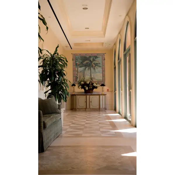 Exotique is a Belgian wall tapestry depicting the pineapple harvest. From a set of ten tapestries called The History of the Chinese Emperor commissioned by Louis Alexandre de Bourbon, son of King Louis XIV, to the Beauvais Manufacture. At the end of the 17th century, the Jesuite missionaries were returning from China with tales and knowledge that were to influence the royal courts of Europe. These tapestries, very exotic for the time, were initially made for the Rambouillet castle. A fine accent to your home décor.