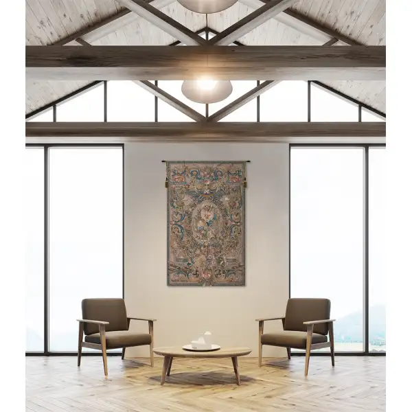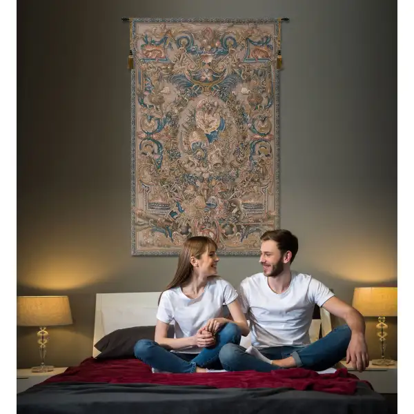 The origins of Le Feu are shrouded in uncertainty. One thing is for certain: This is one of the most elegant and intricately woven tapestries ever created. It is believed that Le Feu was originally assigned to the workshop at the convent of Saint Joseph, rue Saint Dominique in Paris. Best estimates are that it was woven in the 17th century and that the original design was a coat of arms used as a design for an extravagant door. The original is still on display at Versailles. This version of Le Feu is woven to the exact specifications as the original and captures all of its beauty and ornate detailing. The rich colors and vibrant designs will instantly capture and hold your imagination. A fine accent to your home décor.
