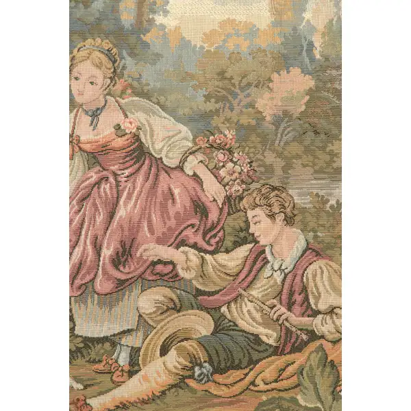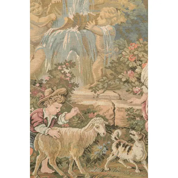 Fountain by the Lake Italian Woven Tapestry features a part of the Noble Pastorale series of 6 tapestries desgined by Francois Boucher.