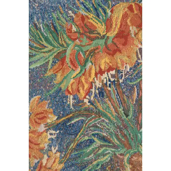 Taking inspiration from the original painting by Vincent Van Gogh, our Fritillaria In a Copper Pot Tapestry brings the artist’s work to life in beautifully woven textile. Blooms and botanical motifs were forever at the forefront of Van Gogh’s works and you can create a focal point of your own with these effusive yellow blooms against a vivid blue background. This impressionism themed tapestry is woven from soft cotton and viscose with luminescent gold thread embellishments. Floral tapestries such as this make a lovely addition to the eat-in kitchen, dining room or bedroom. Lined back and tunneled top for ease of installation. Imported from Belgium.