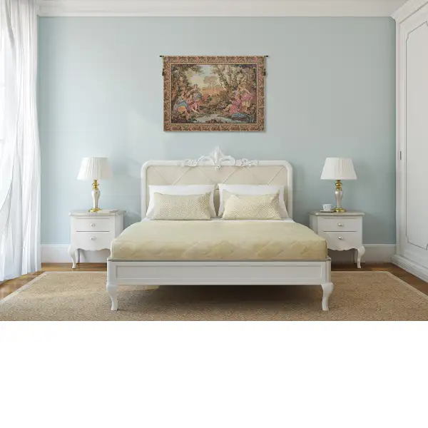 Gallanteries is a European jacquard wall tapestry based on Gallant scenes by Francois Boucher (1703-1770), official painter of Louis XV, King of France.