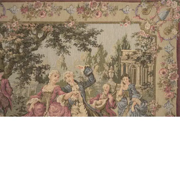 Garden Party Middle Panel woven European tapestry cushion cover features one of the three scenes in the Society in the Park painting by Francois Boucher.