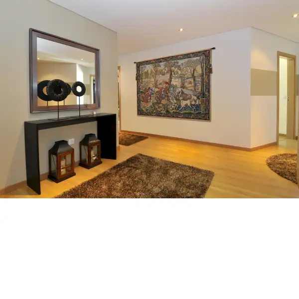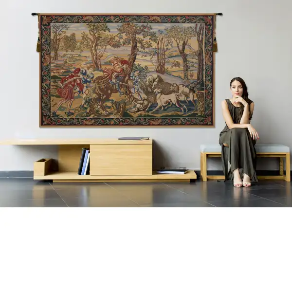 Hunt of the Boar Belgian tapestry depicts a design by Barend Van Orley of English Royals hunting during the 17th Century.