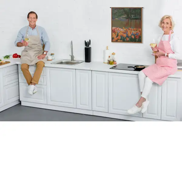 Keukenhof Belgian tapestry features landscapes from the infamous Keukenhof garden in Europe.