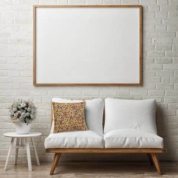 Known for his decorative often sensual works, the Austrian born Gustav Klimt provides the inspiration for our Klimt Tapestry Cushion Cover. During career, the 19th century artist was considered rebellious for his departure from academia’s idea of art. His awe-inspiring works were laden with glistening gold leaf and intense use of color. The circles covering our Klimt pillow cover are found throughout his paintings. Bring a touch of fine art and history to your home with the striking tapestry cushion cover. The cover does not come with pillow insert and requires separate purchase. Cushion cover backed with lining and zipper. Infill not included. Woven in France.