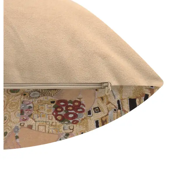 Perhaps the most famous of his decorative and often sensual works Klimt’s Le Basier or The Kiss, provides the inspiration for our cushion cover of the same name. Austrian born Gustav Klimt, a 19th century artist, was considered rebellious for his departure from academia’s idea of art. He created awe-inspiring works dripping with glistening gold leaf and intense coloring The circles covering our Klimt pillow cover are found throughout his paintings. Bring a touch of fine art in your home with the artful tapestry cushion cover. The cover does not come with pillow insert and requires separate purchase. Cushion cover backed with lining and zipper. Infill not included. Woven in France.