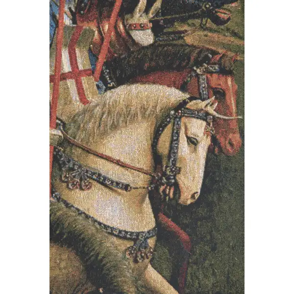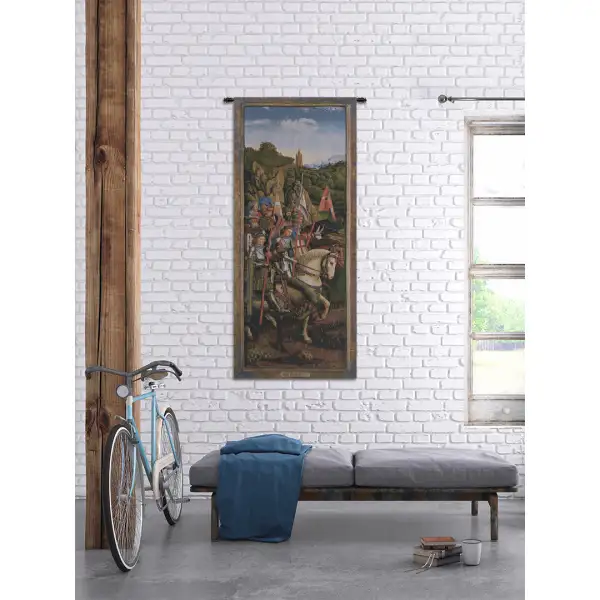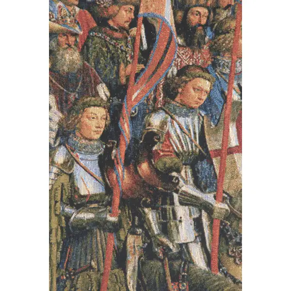 Knights of Christ I, also known as Warriors of Christ is a Belgian jacquard wall tapestry depicting a panel from the Ghent Altarpiece, also known as Adoration of the Mystic Lamb, painted by Jan and Hubert van Eyck circa 1432. At that time the altarpiece represented a new conception of art, in which the idealization of the medieval tradition gave way to an exacting observation of nature and unidealised human representation.
