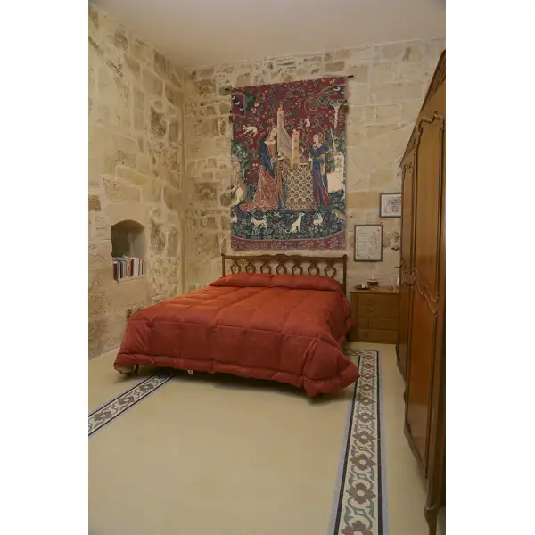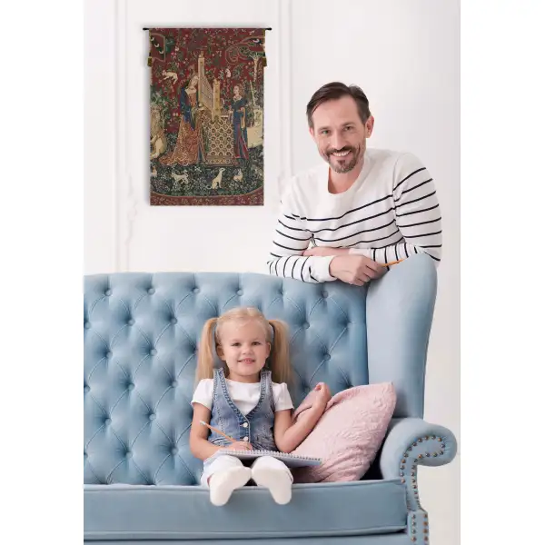 Lady and the Organ III Belgian tapestry is one of the six tapestries in the "Lady and the Unicorn" series. This tapestry represents the sense of hearing.