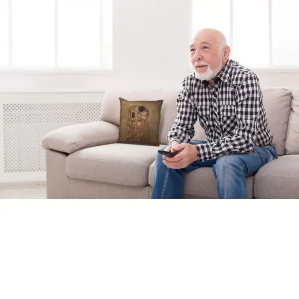 Le Baiser, Klimt Belgian tapestry cushion cover is inspired by "The Kiss" painting by famous painter Gustav Klimt.