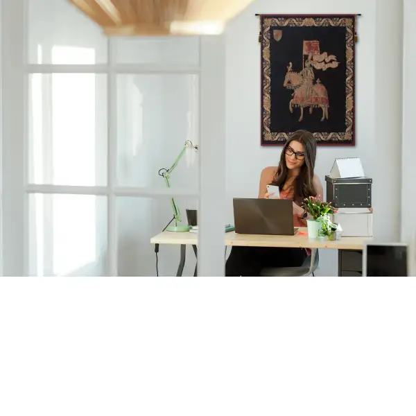 Le Chevalier Fond Uni: The original of this European jacquard wall tapestry, Le Chevalier, or The Knight, was woven in Arras (Flanders) at the end of the 15th century and now resides in the Montecut House in Great-Britain.