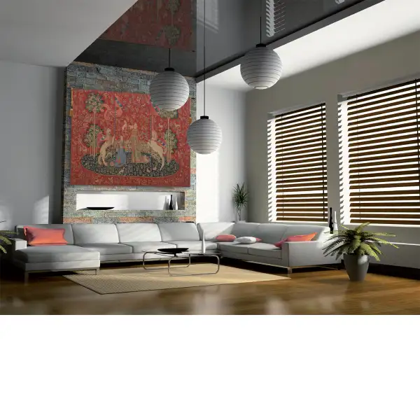 Le Gout Fonce, or The Taste, is a jacquard wall tapestry made in Belgium. It comes from the The Lady with the Unicorn series originally woven in 1510 by Willem de Pannemaker, and featuring the arms of Jean le Viste who originally commissioned the 6 tapestries. Each represent one of the senses except for the final A Mon Seul Desir, commonly considered to be a declaration of love.