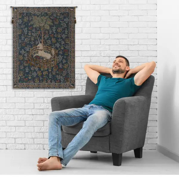 Licorne Captive Blue European Tapestry Wall hanging