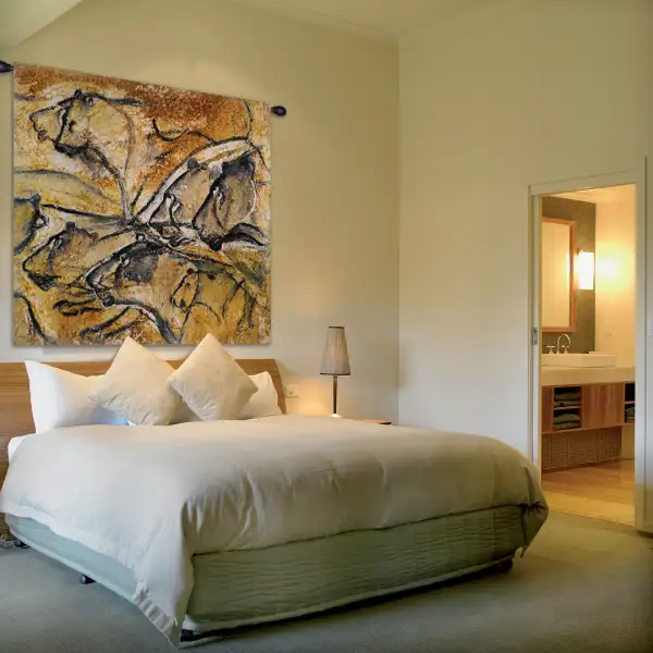 Lions of Chauvet is a Belgian jacquard wall tapestry. This tapestry is taken from the cave Chauvet-Pont-dArc. It dates from 31,000 years ago. What is remarkable in comparison to other caves, is that these predatory animals are displayed in motion, the shading and perspective techniques utilized to represent the lions is quite remarkable as well. The perfect wall art to display in your home to bring an air of beauty to your home decor motif.