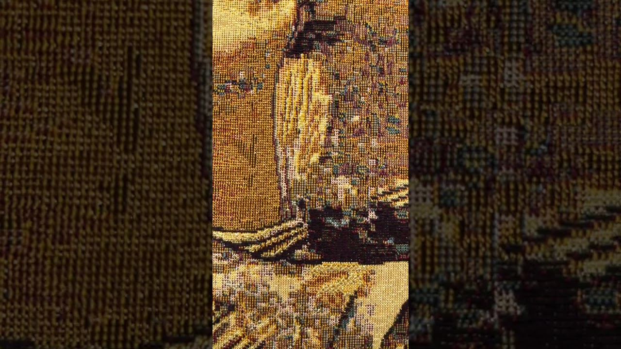 The Madonna Di Vladimir Tapestry is a breathtaking textile rendition of the revered 12th-century painting, known as Our Lady of Vladimir. It depicts Jesus Christ as an infant, cradled lovingly in the arms of his mother, Mary. Crafted in Italy, this tapestry is meticulously woven from a blend of cotton and viscose, embellished with intricate gold thread that adds a captivating sparkle. Its luxurious yet durable quality ensures longevity, while practical features like a lined back and tunneled top facilitate easy installation. Beyond its opulent appearance, the tapestry holds profound symbolism, evoking the timeless essence of maternal love and divine connection. Whether displayed in sacred spaces or homes, it serves as a poignant reminder of faith and devotion, embodying the enduring bond between mother and child.