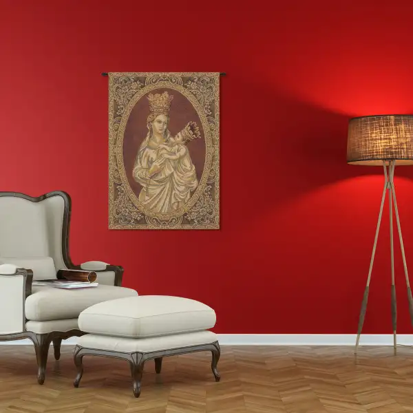 Madonna from Trapani is an Italian jacquard wall tapestry. The artwork is a rendering of the Madonna from Trapani statue by Italian Sculptor Nino Pisano (1349 – 1368).