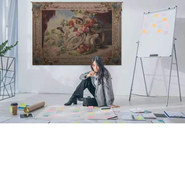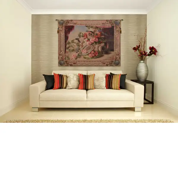 Taking divine inspiration from the Royal Beauvais Workshops of the 19th century, our Mandolin Tapestry brings the beauty of woven artistry to the home. Also recognized as the “Mandoline,” this jacquard woven tapestry wall hanging is a French Impressionistic composition of country life of the period. It brings the beauty of nature, music, and the arts to your surroundings with fine detail and ornate style. The tapestry comes expertly woven in wool and cotton with incredible color saturation for incredible highlighting and shading. Backed with lining and tunneled for easy hanging. Woven in France.