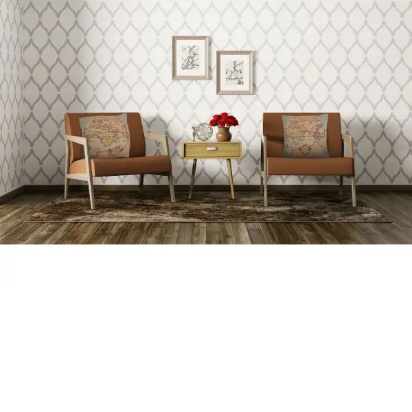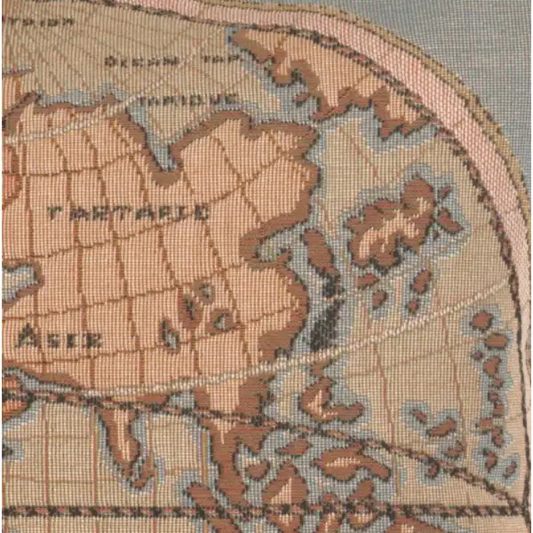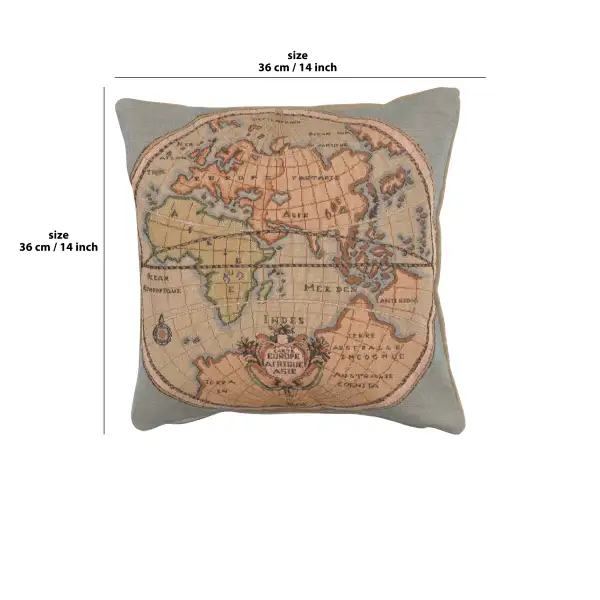 The elegance and sophistication of world maps translated into a French jacquard woven cushion cover.