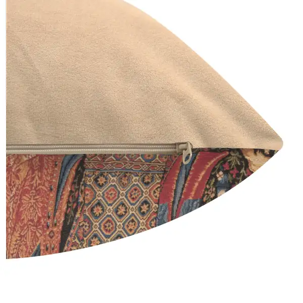 Medieval Hearing woven European tapestry cushion cover features one of the scenes from the "Lady and the Unicorn" series of Belgian tapestries.