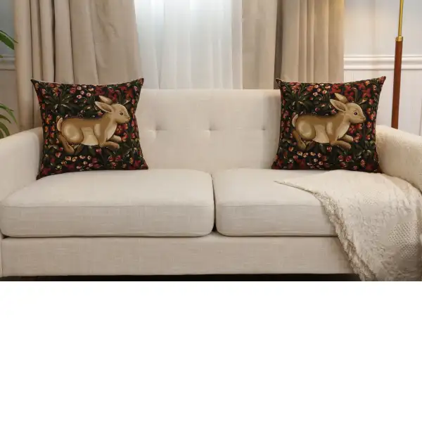 Medieval Rabbit with Flowers Running European Cushion Covers