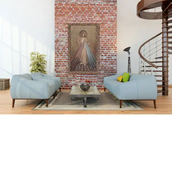 Merciful Jesus Italian woven tapestry depicts an image of the Divine Mercy Jesus Christ.