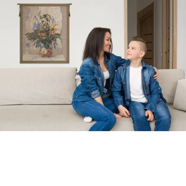 This Belgian wall art tapestry, Mobach, is taken from a bouquet by Daniel Ost. Belgium born Ost's clientele includes royal families of several nations, sheiks, celebrities. He is known as the world's leading flower designer. A fine accent to your home décor.