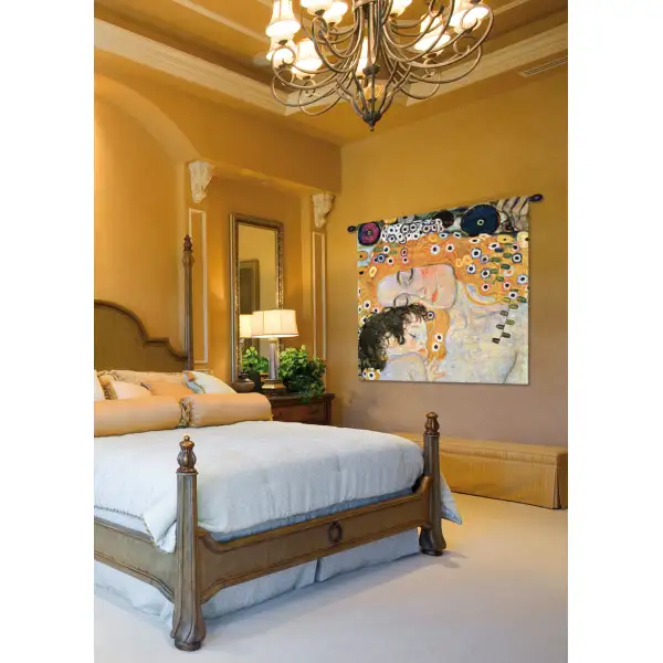 Mother and Child is Belgian jacquard wall tapestry. It is an extract from The Three Ages of Woman by Gustav Klimt. Now displayed at the National Gallery of Modern Art in Rome. Here we see the mother and child in a deep embrace, symbolising protective love and sweet tenderness.