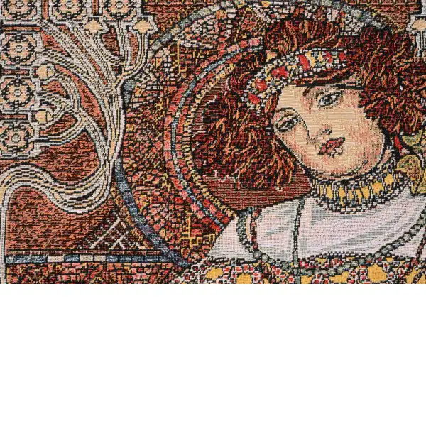 Mucha Autumn I woven European tapestry cushion cover features the work of artist Alphonse Mucha.