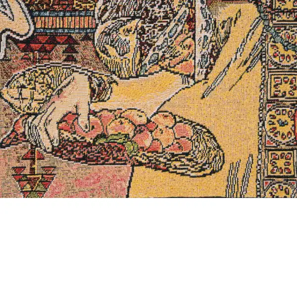 One of a series of tapestries depicting the four seasons, “Art Nouveau-Autumn” celebrates the coming of fall. The subject of the piece, a lovely female, is shown holding fruit and an organic scepter in a style that is the very essence of the Art Nouveau art. The detail is amazing on this tapestry. It is based on the groundbreaking work of artist Alphones Mucha (1860-1939) who helped define the Art Nouveau period, which lasted 30 years. A native of Czechoslovakia, Mucha lived in Paris during the height of his career. There, he painted many works, including Panneaux, a series of works designed around a central theme. These were extremely popular during Mucha’s lifetime. “Art Nouveau-Autumn” is from one of these series.