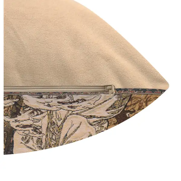 Mucha Winter I woven European tapestry cushion cover features the work of artist Alphonse Mucha.