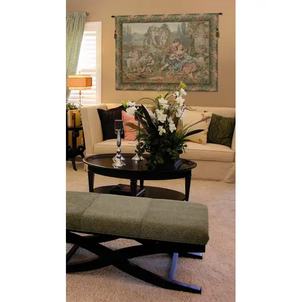 Noble Pastorale Italian Woven Tapestry features part of the Noble Pastorale series of 6 tapestries designed by Francois Boucher.