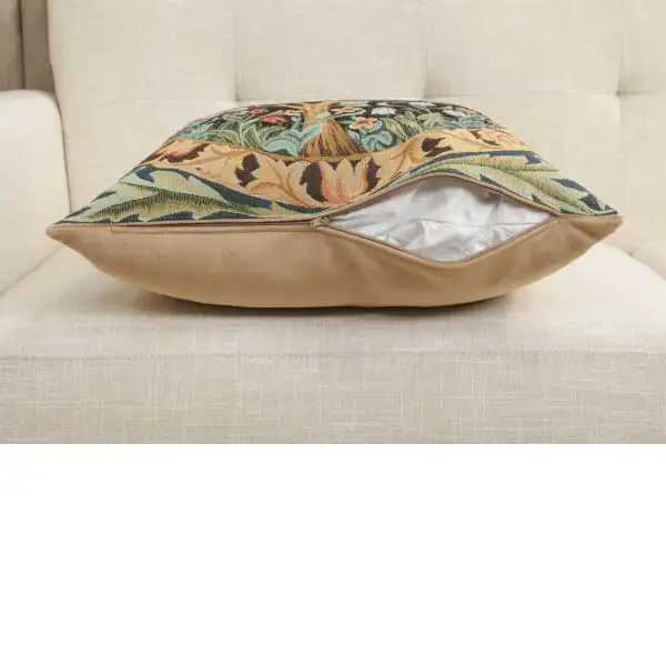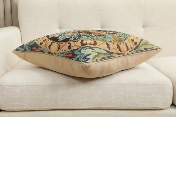 Orange Tree I is a European jacquard woven tapestry cushion cover. This image of a simple fruit tree is a reproduction of a well known tapestry design - The Orange Tree. It was produced by Morris & Co, the design and manufacturing company started by William Morris in the late 19th century.